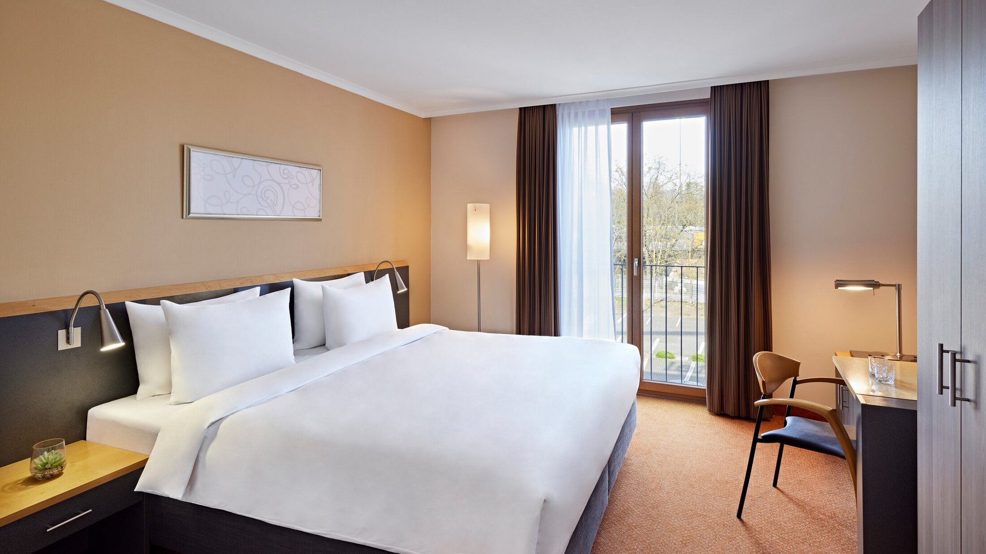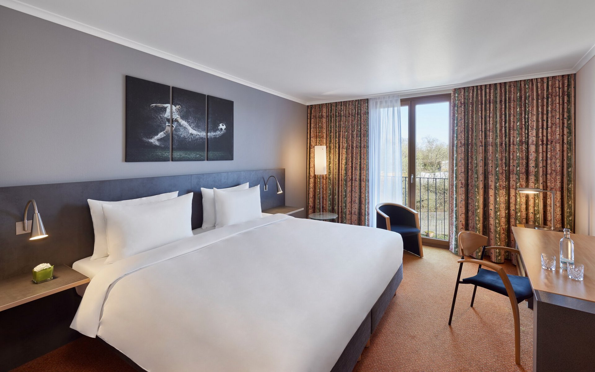 Unsere 28 Quadratmeter großen Standard Zimmer bieten dir modernen Komfort und unkomplizierte Erholung – direkt in der Nordkurve. Einchecken, ankommen, abschalten – mitten im Spiel und trotzdem ganz bei dir. Ideal für Geschäftsreisende, die Energie tanken wollen, bevor es wieder auf den Platz des Alltags geht.