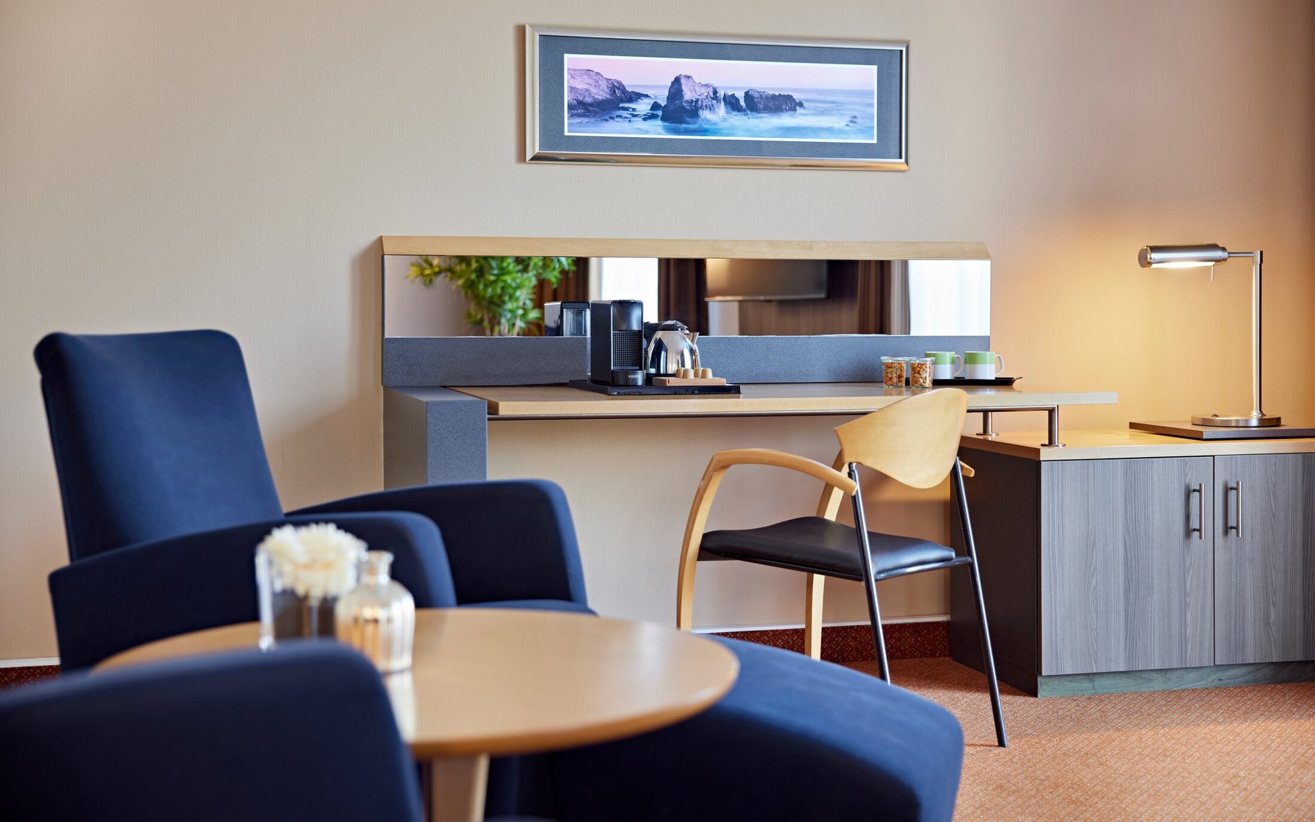 Unser Studio verbindet Design, Komfort und Stadionflair auf 62 Quadratmetern – mit separatem Schlafzimmer, Bad und Gäste-WC. Bold im Look, klar im Design und direkt im Herzen der BayArena – für alle, die das Besondere suchen. Perfekt für längere Aufenthalte, Businessgäste mit Anspruch oder Fans, die das Spielgefühl in seiner exklusivsten Form erleben wollen.