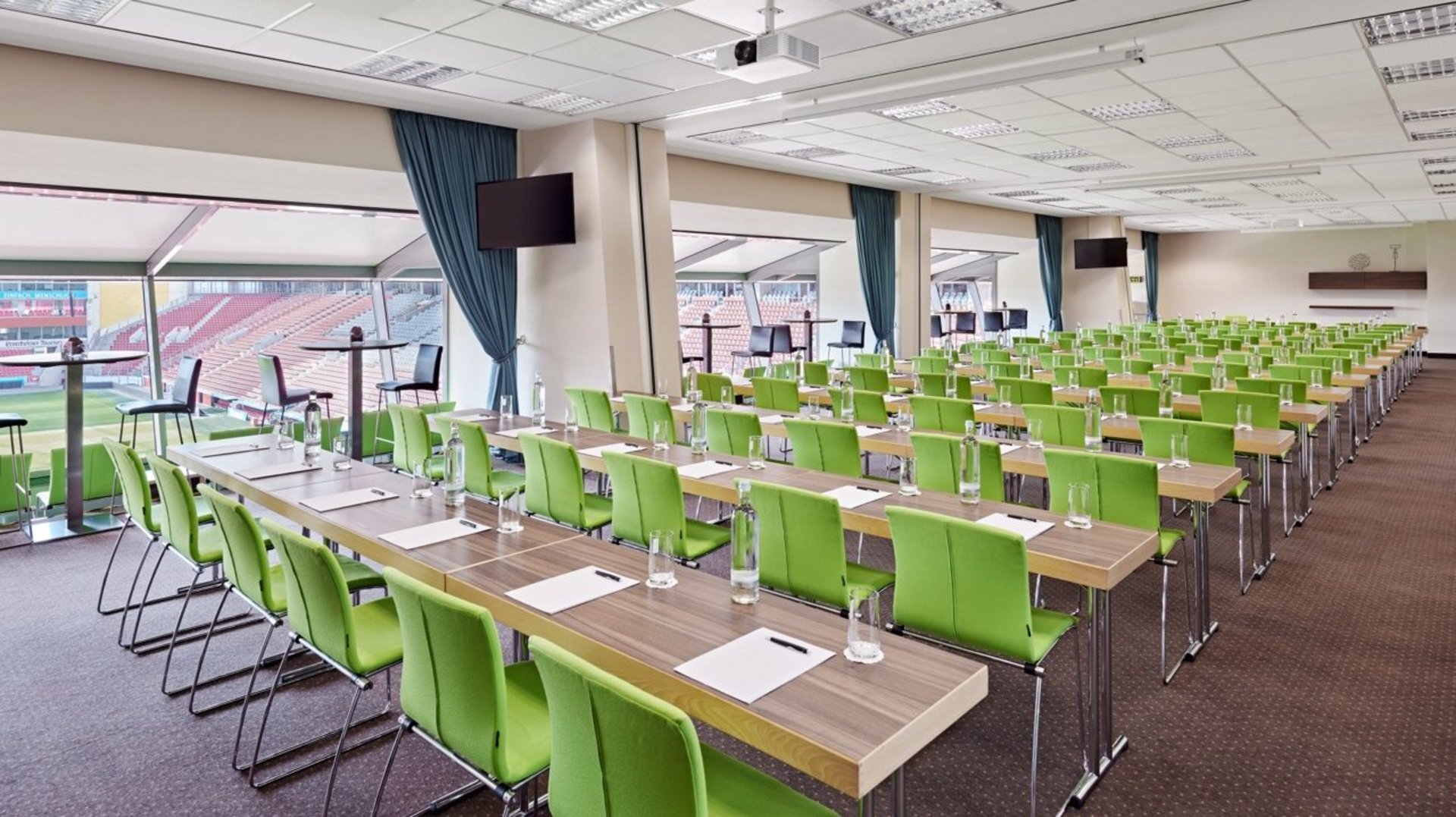 Moderner Tagungsraum mit Stadionblick: Der Raum Alibipass kombiniert Licht, Stil und Technik auf 55 m² – perfekt für produktive Meetings und Tagungen mit Atmosphäre.
