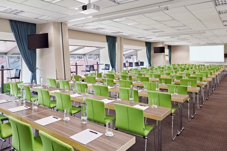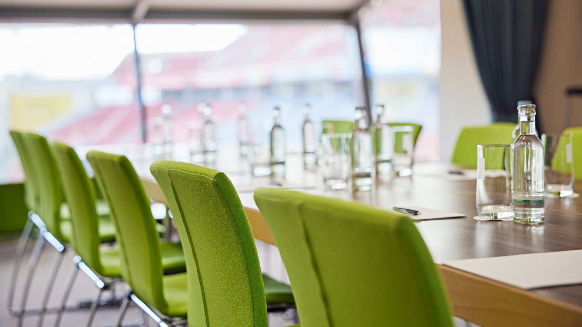 Moderner Tagungsraum mit Stadionblick: Der Raum Alibipass kombiniert Licht, Stil und Technik auf 55 m² – perfekt für produktive Meetings und Tagungen mit Atmosphäre.